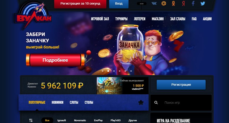 Официальный сайт казино Вулкан - неплохой выбор для отечественного игрока. Игровая площадка предлагает сессию на безопасных условиях, активацию разнообразных бонусов, ознакомление с контентом от известных провайдеров.